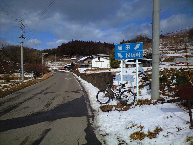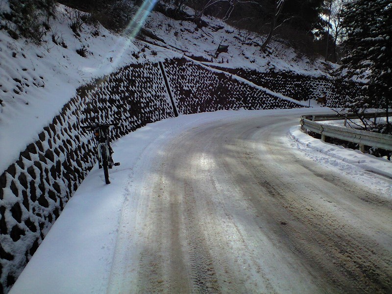 なぜって? てやんでぃ!!カネがねぇんだよぅ! 来週末青森・大鰐に行くために、節約したのだよ、オッホン! 土曜日はMTBに跨り、松坂峠を目指す。 久しぶりに見る風景、寒々しい。 いや・・・寒い! 日陰はこんなになってるのだ! ご報告しときます、なでら男さん。 峠本体に到達せず、そのまま戻って川原を一周。 じゃあ・・・てんで、今日。 浜に行けば大丈夫だろう。 ロードを積んで車で移動。 年明け最初の100キロ平地練だー!! 大沢峠・・・ウチの辺りよりも雪が多い(汗) ま、峠だからな! 相馬港近く。 ウチの辺りよりも雪が多い。(日陰凍結) ・・・かえろ。 結局、いつも夜練で使用する近所の周回コースを4周。 チャリも結構走っていた。 あーあ、毎度のことながら「ムダ足」が多い(泣) ここんとこ、「ブルーな気持ち」に支配されている。 2010年になって間もないのだが、早くもオイラに最大の危機が訪れた。 それは・・・