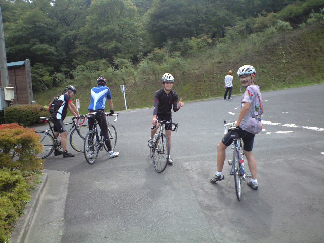 本日、TRのSさんとかがいらっしゃっているので、先頭集団はさぞかしペースが速いことでしょう。 しばらくsuganoさんとおしゃべりしながら登ってましたが、途中でお先に失礼しました。 kikumanさんに合流、前回無念の足つきの場所に差し掛かる。 料金所から上はガスがかかっているみたいです。 さて、上を目指して出発! 速かった人たちはすっかり身体が冷えてしまったみたい。 ナデラマンさん、初めてご一緒させていただきましたが、立派な足です♪ 殆ど車に合うこともなく、無事浄土平に到着。 寒いーーーー!! 休憩所が開いたようなので、早速暖を取る。 kikumanさんの座っていた「セレブ席(笑)」にて、きのこ汁を食す。 何となく、敗戦ムードが漂い始める。 いつもなら、道路最高点で記念撮影などするのですが、皆さん黙々と進む。 タイヤのグリップにビクビクしつつ、土湯ゲートに到着。協議の結果、「楽しみはこの次に・・・」 長い長い下り、顔に水しぶきを浴びながら、ハイペースで下る。 高度が下がるにつれ、気温上昇が肌身で感じられる。 あづま学習センターに到着。スカイライン一周ツーリング、3時間半弱の走行時間だった。 ・・・ま、そんな時もあるさ! この次は、この、楽しく苦しいコースをすべて走破し、満足感に浸りたい・・・そう思います。 9月6日。その日はあっという間に訪れました。 5時45分現地着。 受付終了、アップに出かける。 時間はどんどん過ぎて開会式、そしてスタートの時間を迎える。 ここでトラブル。 えいっ!と「無理やり修復」が功を奏し、何とか回るように・・・。 思ったよりスロースタートで安心したのもつかの間、位置取りしようとうろうろしてたら「蛇行するな!」とお叱り。 あれ?40キロ越えてます。 早稲沢からのキライなダラダラ登りに入る。 ponさんやけんちゃんを発見、一声かけて、お先に失礼します~。 ようやくつづら折れになり、気分的に楽になった。(心拍は190超えでくるちいが・・・) 斜度がゆるくなったらギヤを切り替え、出来る限りマージンをとるようにして進む。 お仕事中のsuganoさんに檄を飛ばしてもらい、ラストスパートか?と思ってたら