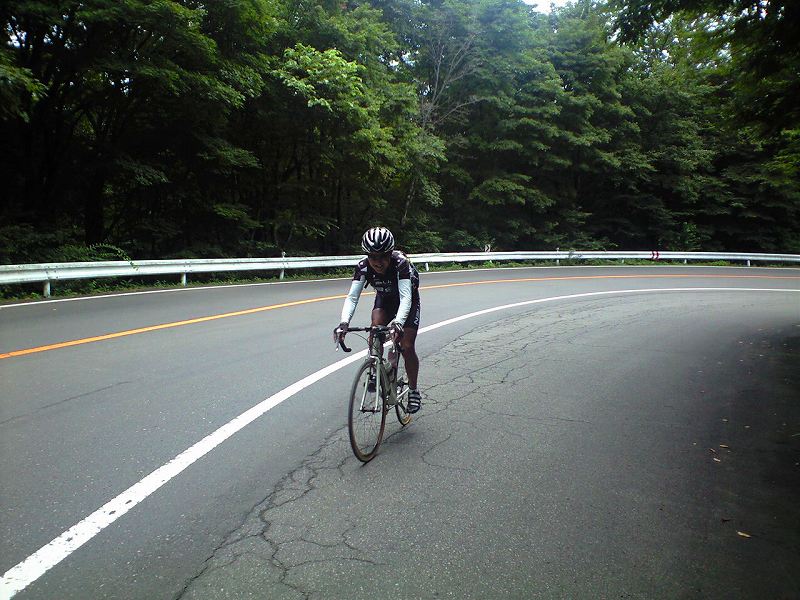 6年生なんだから当然だよねー!・・・と一応 それでは、オヤジも自由研究をやってみよう。 題材は「彼の聖地」。 どうしたらラクに登れるのか?? ・・・答えは見えているとか言わないように(笑) 早速実験。 13日の金曜日(!)、朝10時に実家発。いつも以上にねぼすけ(笑) さすがに前夜「リッター超え」のタイトルを手にしたオヤジらしい。 聖地に行くのには2つのルートがある。・・・何のことは無い、土湯側か、高湯側かである。 迷わず高湯を選んだ。 これにはワケがある。 高湯側の無散水消雪道路は、あまりの急勾配につき、登る人を試しているかのような雰囲気。 これは逆に言うと、下るときに怖い思いをする。だから登る。 もう一つ、高湯側からだと早い段階で登り始めるため、後でラクができる・・・それだけのこと。 10キロの平地走行、さて、行くぞ!極楽浄土! ・・・暑い?いや、そうでもない。結構快適。 しかし料金所では爆汗。チェーン脱着所から36分と出ている。 相変わらずだ。 スカイラインはグランフォンド以来だ。 苦しかったが、楽しかったなぁ。 つばくろ谷についた。 涼しい・・・いや、さむぅい(泣)。 降りてくるサイクリスト、ライト点灯・長袖だったな。 ウィンブレも、アームカバーも持ってこなかったことを後悔。 極楽浄土。実家から2時間10分。 薄日が差し、ホッとする。 伊達市からのサイクリストと言葉を交わし、コーラ補給。 さすがに今日は自転車多かった気がする。 さて、分析をば。 ・・・何事もなく登っているようだが、嫌いなシチュエーションが何箇所かある。 まずは2箇所目の「白い道路」無散水消雪道路だ。 何といっても急だし、日当たり良好。しかし越えればホッとする。 次はつばくろ谷手前の九十九折れ。カーブに伴う急な登り勾配が足の元気を確実に奪う。 まだある。 意外といやらしいのが森林限界を超えたあたりのだらだら登り勾配と、例の「1622」の手前のかすかな登り。 気持ちは達成感いっぱいだが、圧し掛かる負荷にめげてしまいそう。 もともと「使い切りたい」タイプらしいのでしょうがないか。 ・・・とまあ、自由研究らしい内容となった(笑) 研究の結果、ラクに登る方法は「ない」汗 今年ようやく3回目、やっぱり「孤高の聖地」だな。 暑い!!!!!! 乗れませぬ。 あんまり暑いので、タイトルもおかしくなってきたか(汗) 先週1週間は、欠かさず乗り続けたが